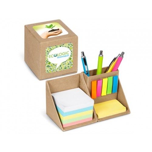 The perfect functional desk mate and it's eco-friendly too. Includes a pen holder, colourful memo pads and sticky flags. Grey board & Kraft paper. Closed: 9 ( l ) x 9 ( w ) x 9 ( h ). Open: 18 ( l ) x 9 ( w ) x 9 ( h ).